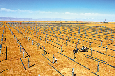 海南州充分利用大面積荒漠化土地和太陽能資源優勢,集中連片實施千萬千瓦級清潔能源基地建設,推進新能源發電項目落地,并探索建設多能互補模式。